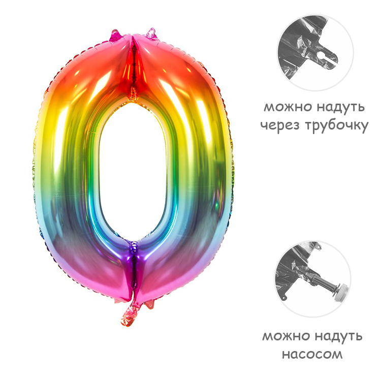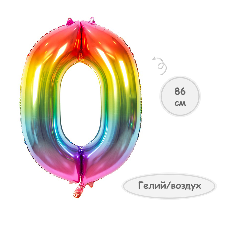 Воздушный шар цифра 0 металлик радуга 86см Китай