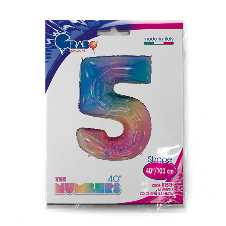 Воздушный шар цифра 5 радуга переливы 86см Италия