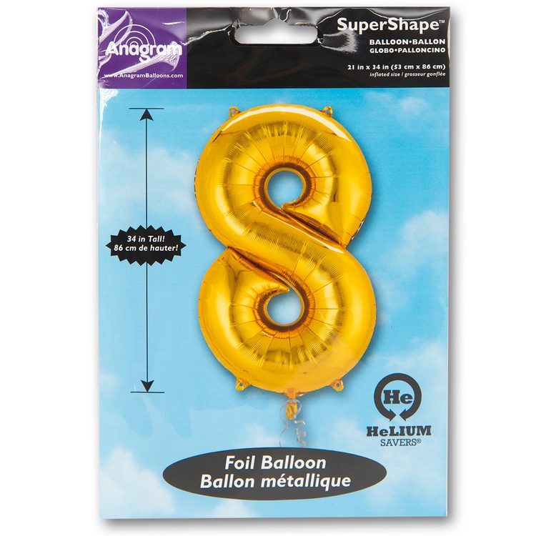 Воздушный шар цифра 8 золото 86см США
