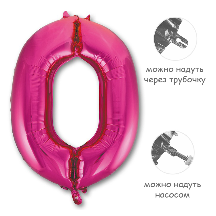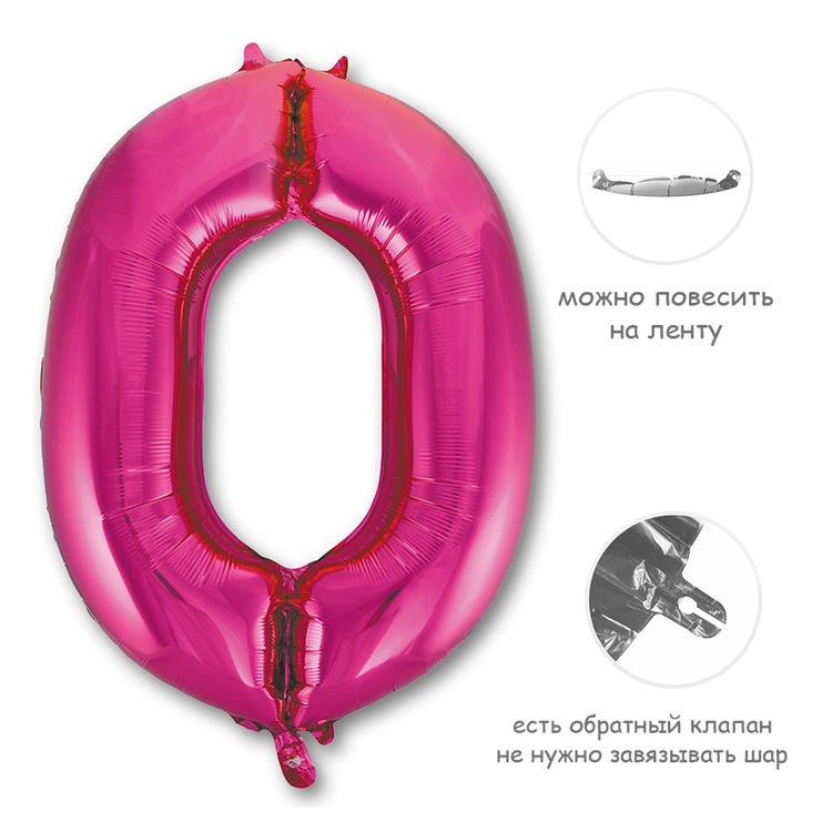 Воздушный шар цифра 0 фуксия 86см Китай
