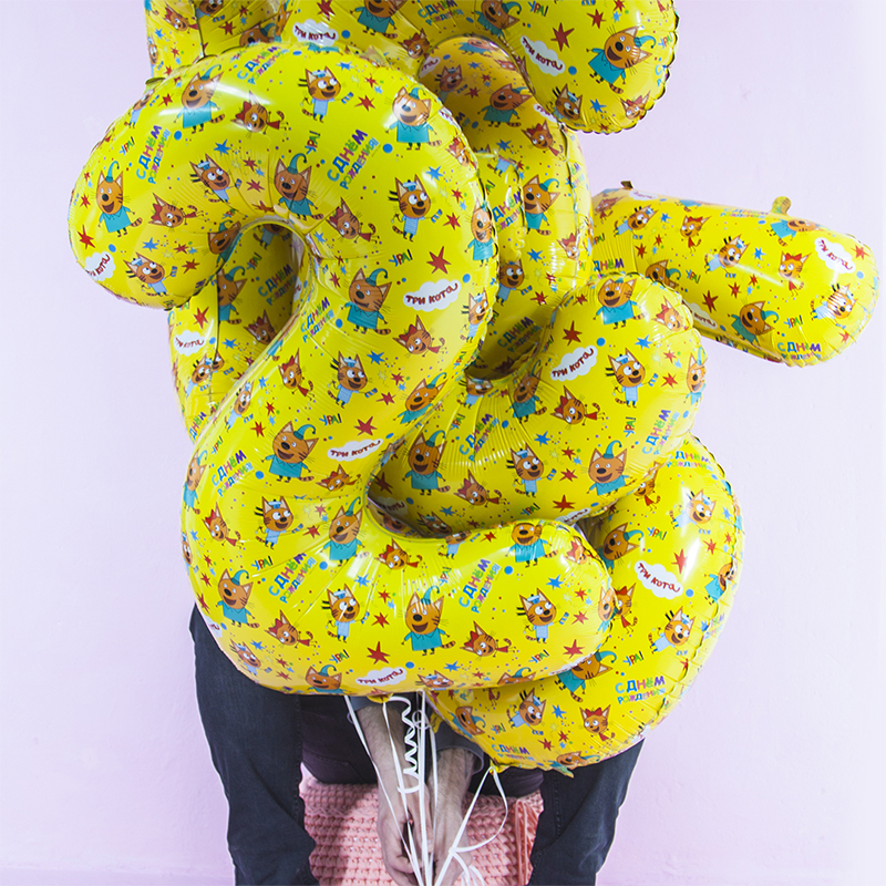 Воздушный шар цифра 2 Три Кота жёлтый 86см