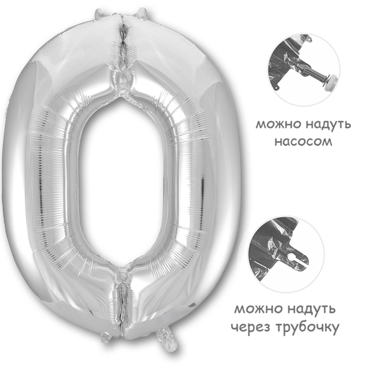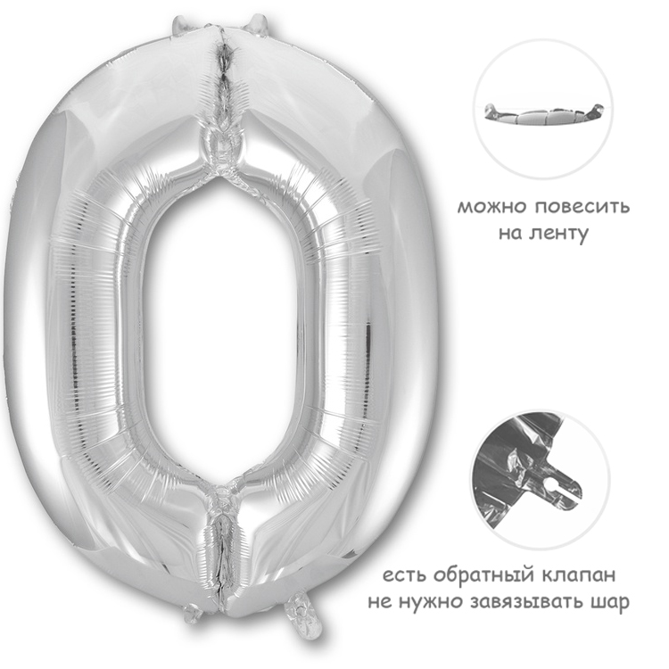 Фольгированный воздушный шар в форме цифры. Изготовлен из тонкой миларовой пленки, позволяющей шару не сдуваться в течение нескольких дней.Фольгированные воздушные шары надувают через клапан. Поэтому плотно надутый шар завязывать не требуется - обратный клапан хорошо удерживает гелий внутри шара. К шару привязывают ленту только для того, чтобы шар не улетел.