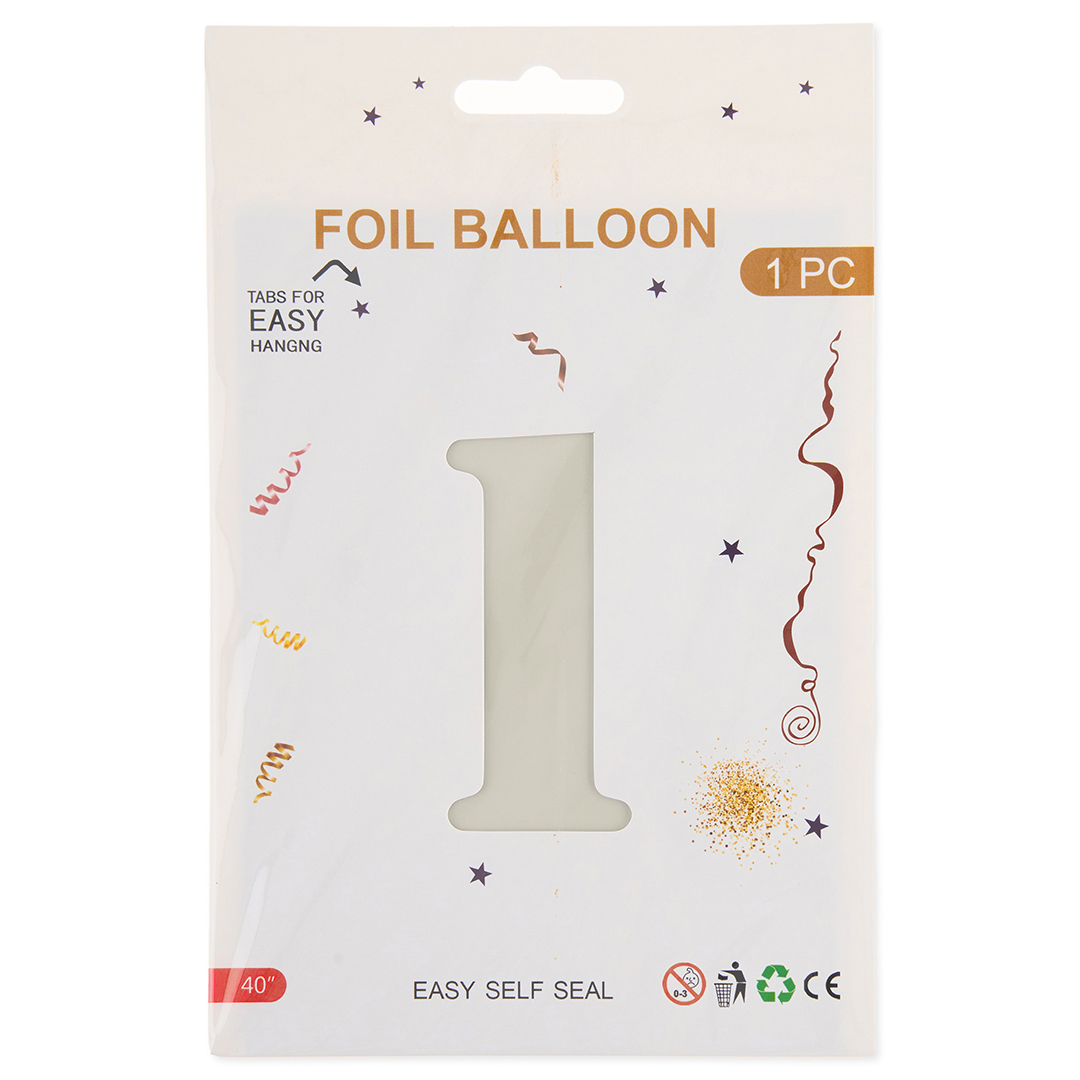 Воздушный шар цифра 1 белый песок сатин 102см