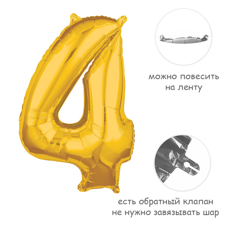 Фольгированный воздушный шар в форме цифры. Изготовлен из тонкой миларовой пленки, позволяющей шару не сдуваться в течение нескольких дней.Фольгированные воздушные шары надувают через клапан. Поэтому плотно надутый шар завязывать не требуется - обратный клапан хорошо удерживает гелий внутри шара. К шару привязывают ленту только для того, чтобы шар не улетел.