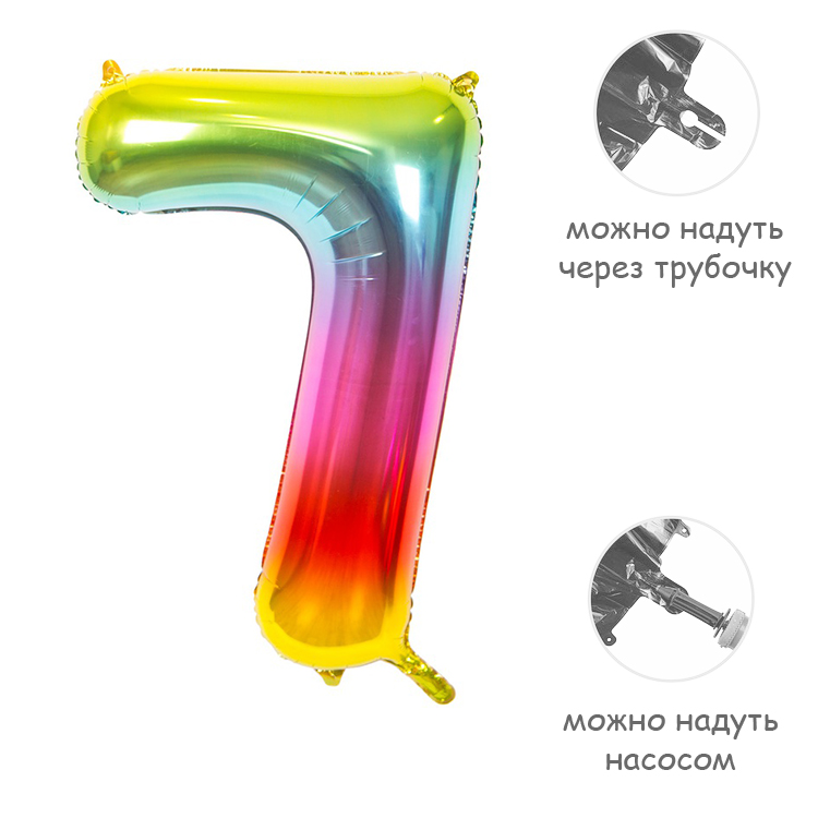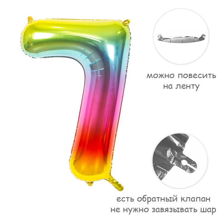 Воздушный шар цифра 7 металлик радуга 86см Китай