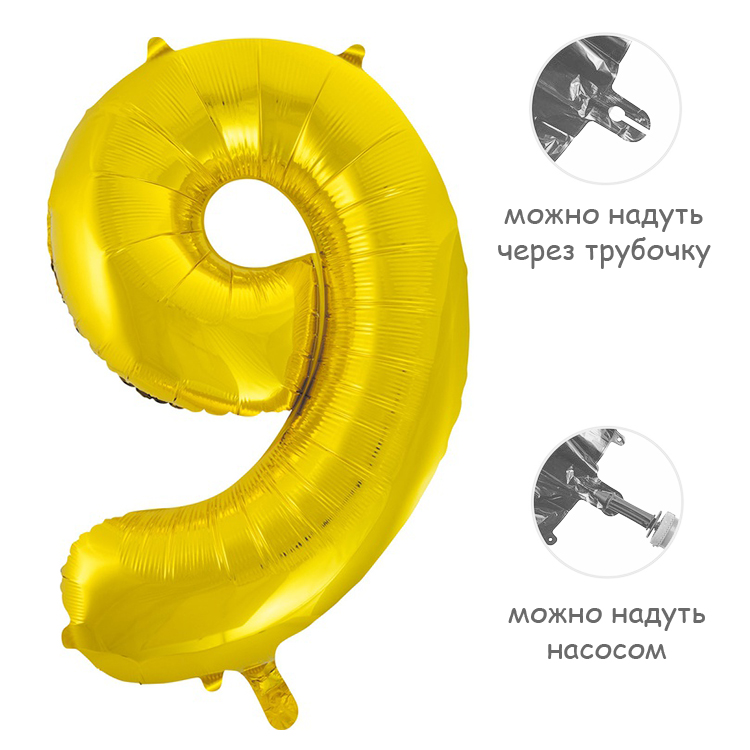 Фольгированный воздушный шар в форме цифры. Изготовлен из тонкой миларовой пленки, позволяющей шару не сдуваться в течение нескольких дней.Фольгированные воздушные шары надувают через клапан. Поэтому плотно надутый шар завязывать не требуется - обратный клапан хорошо удерживает гелий внутри шара. К шару привязывают ленту только для того, чтобы шар не улетел.