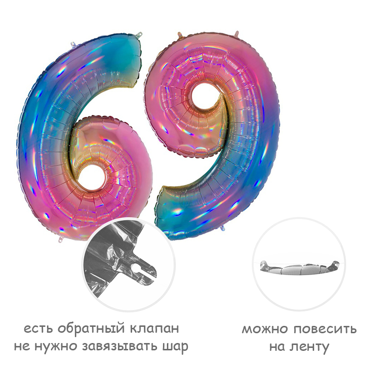 Фольгированный воздушный шар в форме цифры. Изготовлен из тонкой миларовой пленки с голографическим эффектом, позволяющей шару не сдуваться в течение нескольких дней.Фольгированные воздушные шары надувают через клапан. Поэтому плотно надутый шар завязывать не требуется - обратный клапан хорошо удерживает гелий внутри шара. К шару привязывают ленту только для того, чтобы шар не улетел.