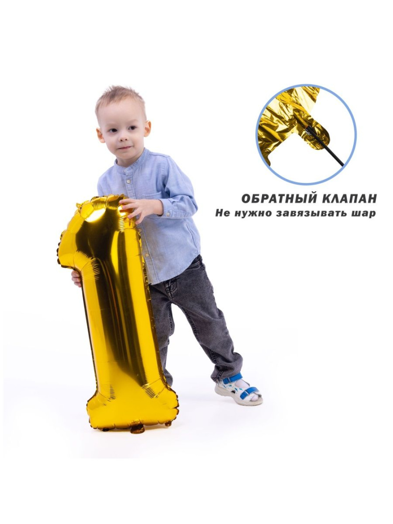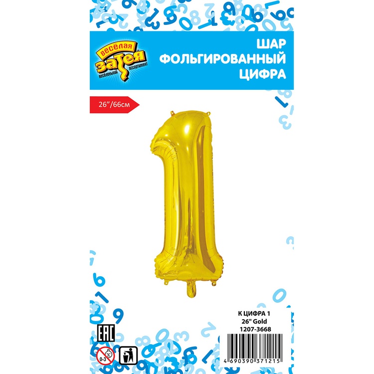 Воздушный шар цифра 1 золото 66см Китай