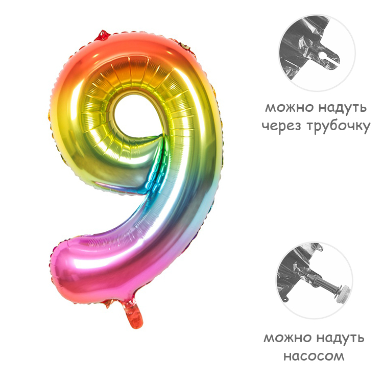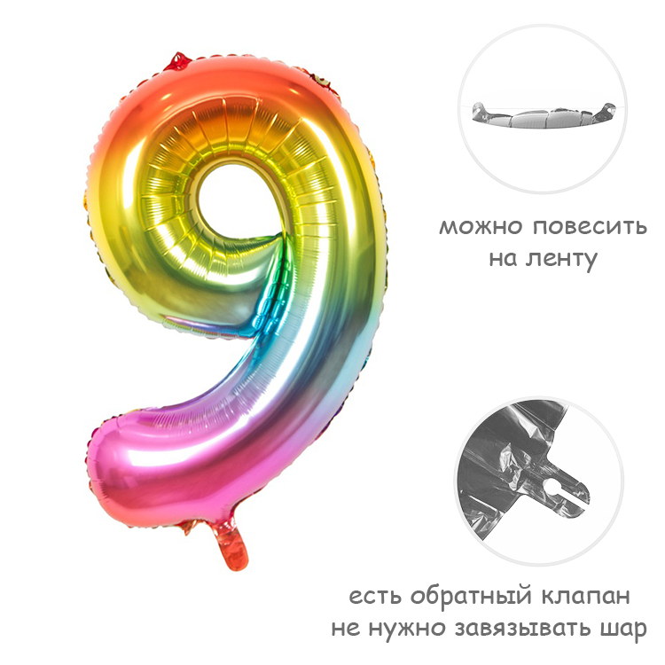 Воздушный шар цифра 9 металлик радуга 86см Китай