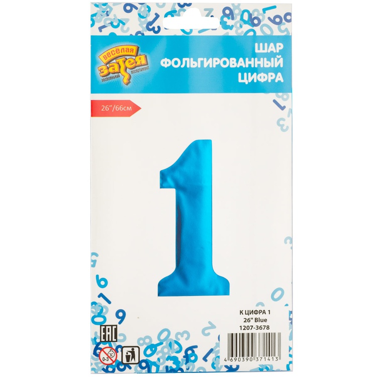 Воздушный шар цифра 1 синий 66см Китай