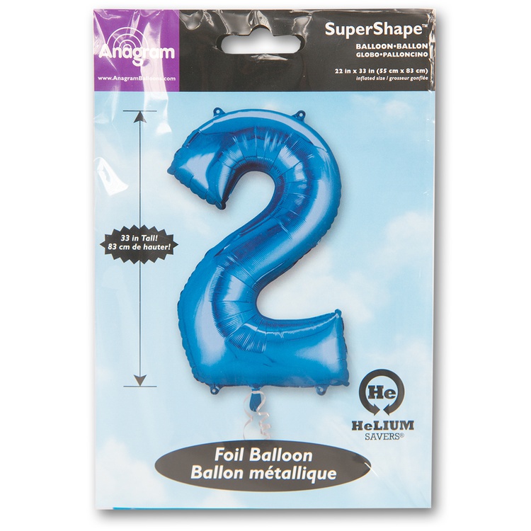 Воздушный шар цифра 2 синий 86см США