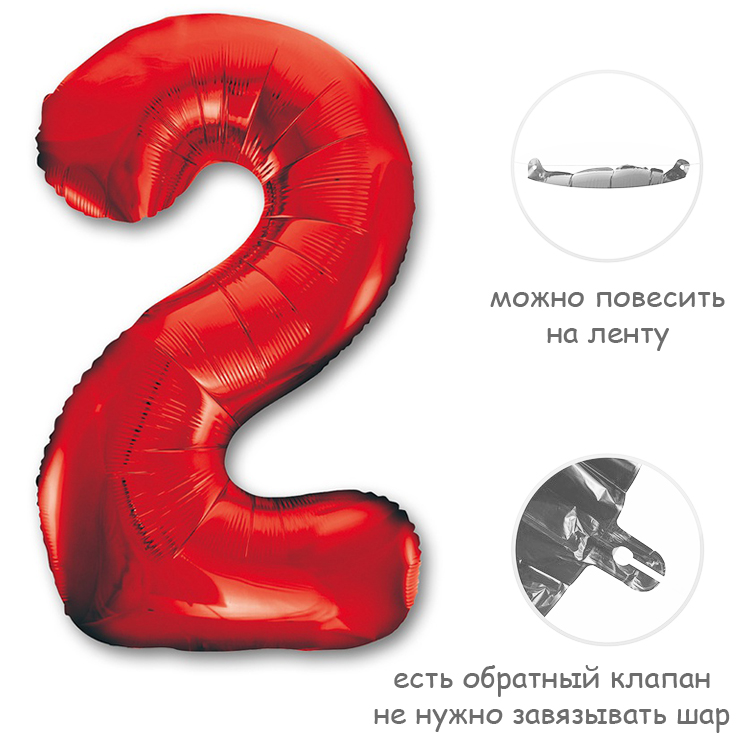 Воздушный шар цифра 2 красный 86см Китай