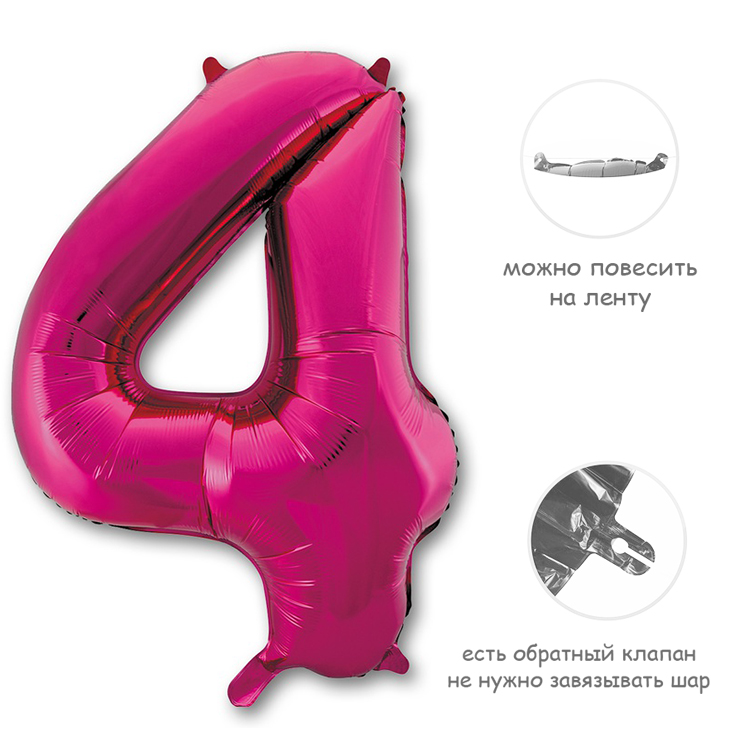 Фольгированный воздушный шар в форме цифры. Изготовлен из тонкой миларовой пленки, позволяющей шару не сдуваться в течение нескольких дней.Фольгированные воздушные шары надувают через клапан. Поэтому плотно надутый шар завязывать не требуется - обратный клапан хорошо удерживает гелий внутри шара. К шару привязывают ленту только для того, чтобы шар не улетел.