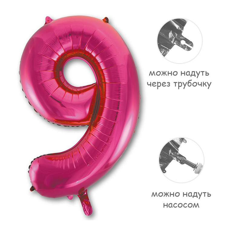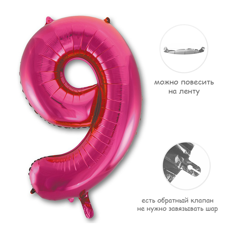 Фольгированный воздушный шар в форме цифры. Изготовлен из тонкой миларовой пленки, позволяющей шару не сдуваться в течение нескольких дней.Фольгированные воздушные шары надувают через клапан. Поэтому плотно надутый шар завязывать не требуется - обратный клапан хорошо удерживает гелий внутри шара. К шару привязывают ленту только для того, чтобы шар не улетел.