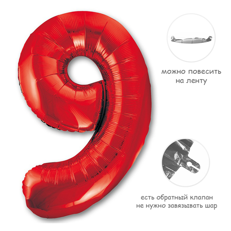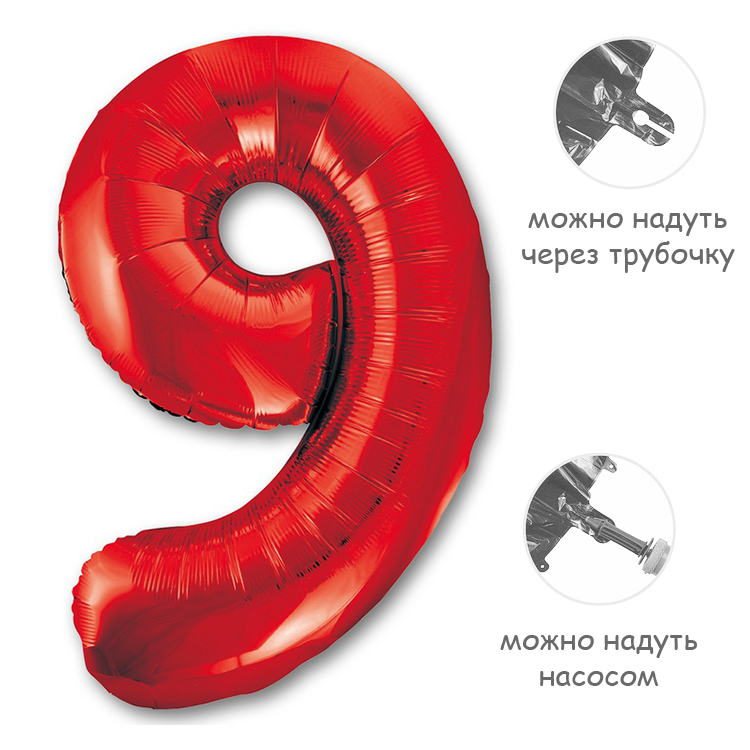 Воздушный шар цифра 9 красный 86см Китай