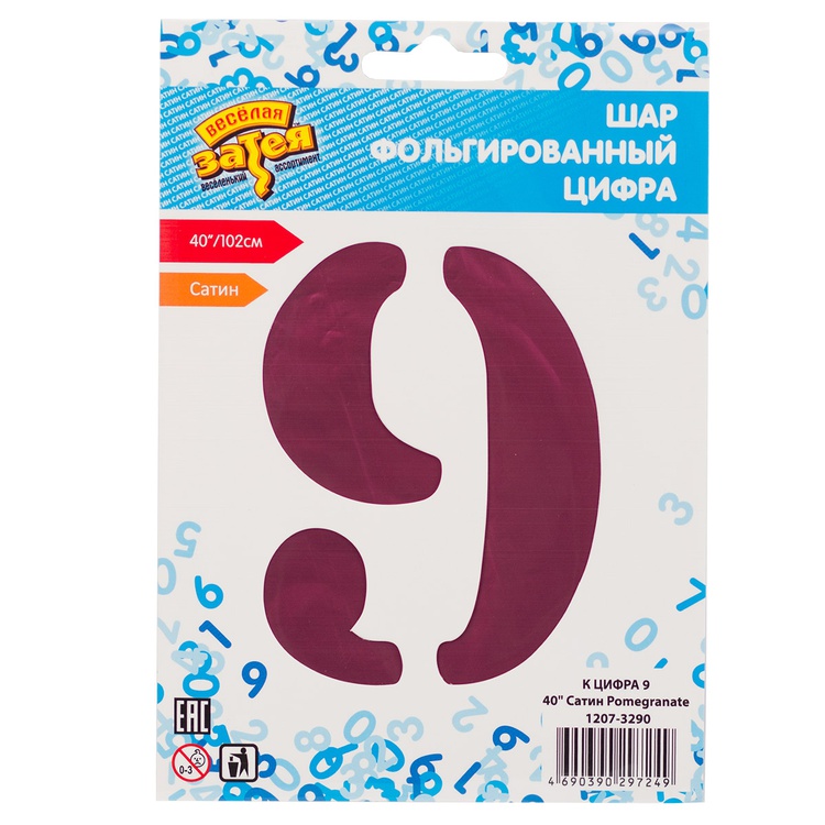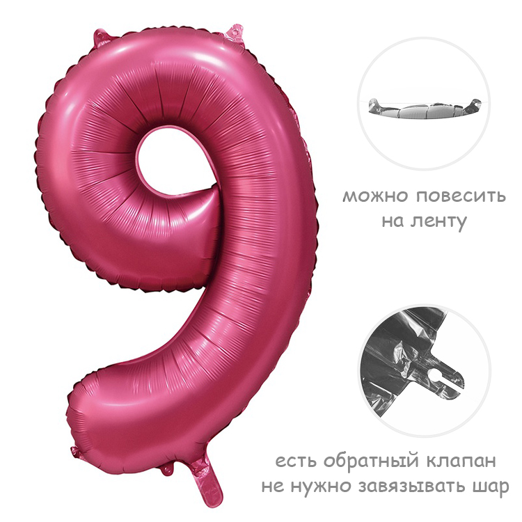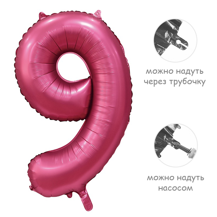 Воздушный шар цифра 9 сатин гранатовый 86см Китай