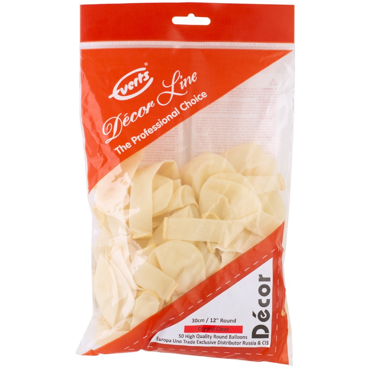 Прозрачный воздушный шар из натурального латекса. Тип шара - кристалл, что означает что латекс шара прозрачен.Шар Everts идеально подходит для использования в оформлении. Благодаря круглой, гармоничной форме отлично смотрится в букетах. Эластичный хвостик шара делает работу с ним удобной и приятной. Отлично держит гелий благодаря плотной структуре латекса. Шар создан по немецким технологиям в Малайзии. Шары Everts соответствуют самым высоким и строгим европейским стандартам качества. Безопасность шара для детей гарантируют сертификаты Евросоюза EN71 Toy Safety Directive и TUV Product Safety GmbH. Шары Everts полностью биоразлагаемы и безвредны для экологии.