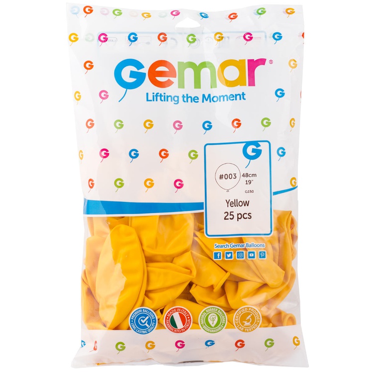 Воздушные шары от Итальянской компании Джемар — отличный способ украсить любое торжество! В упаковке содержится 25 латексных шаров жёлтого цвета диаметром 18 дюймов, которые идеально подойдут для создания яркой и радостной атмосферы на празднике. Эти резиновые шарики без рисунка можно использовать как самостоятельный элемент декора или комбинировать с другими цветами и типами шаров для создания оригинальных композиций.Латексные шары легко надуваются и могут быть использованы как для надувания воздухом, так и для наполнения гелием. Благодаря высококачественному латексу, эти воздушные шарики обладают отличной прочностью и долголетием, что гарантирует вашу радость от использования на протяжении всего мероприятия.
