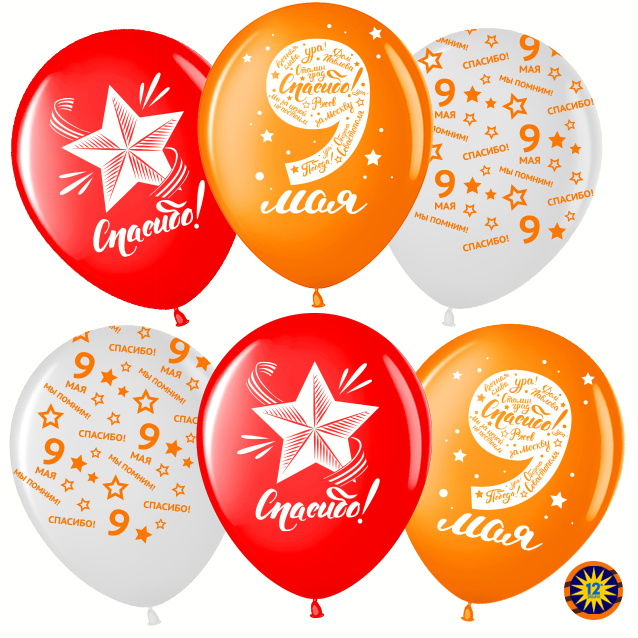 Шарики 12" 9 Мая Спасибо за Победу 50шт