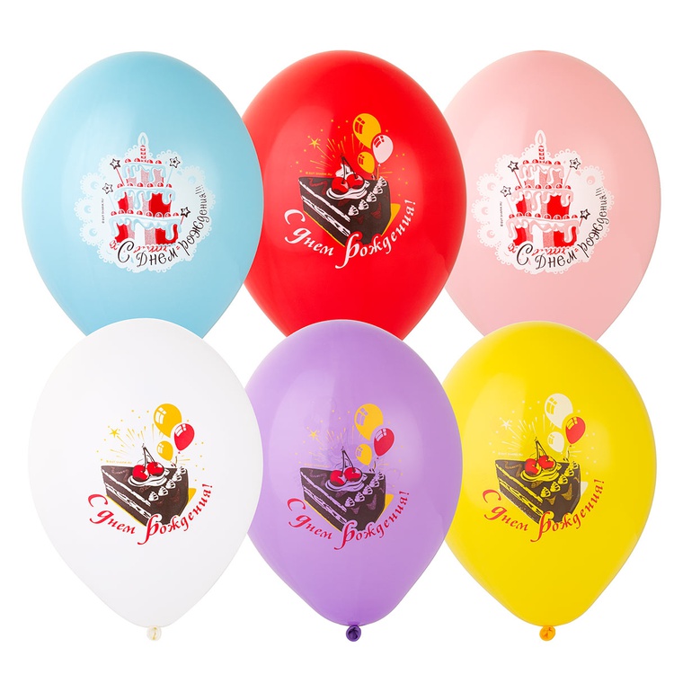Высококачественный шар из натурального латекса. Набор из 10-12 цветов, одного типа - пастель - матовый оттенок цвета.Шары с двусторонним многоцветным рисунком на тему С Днем Рождения с большим полем печати.