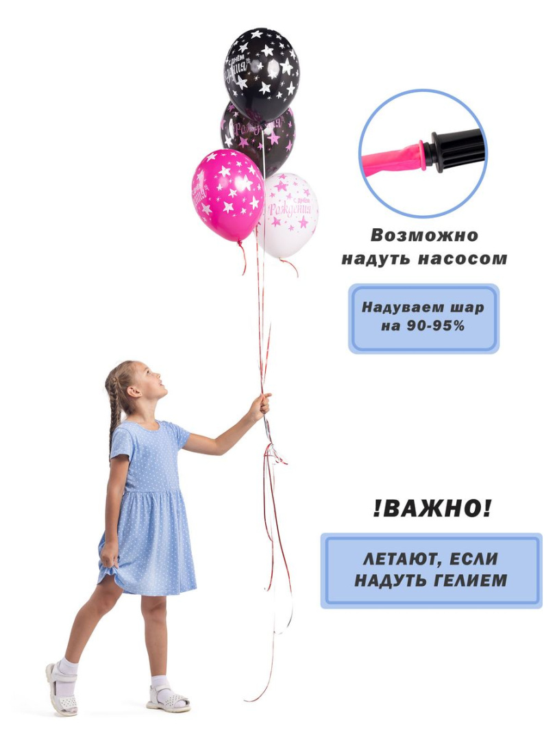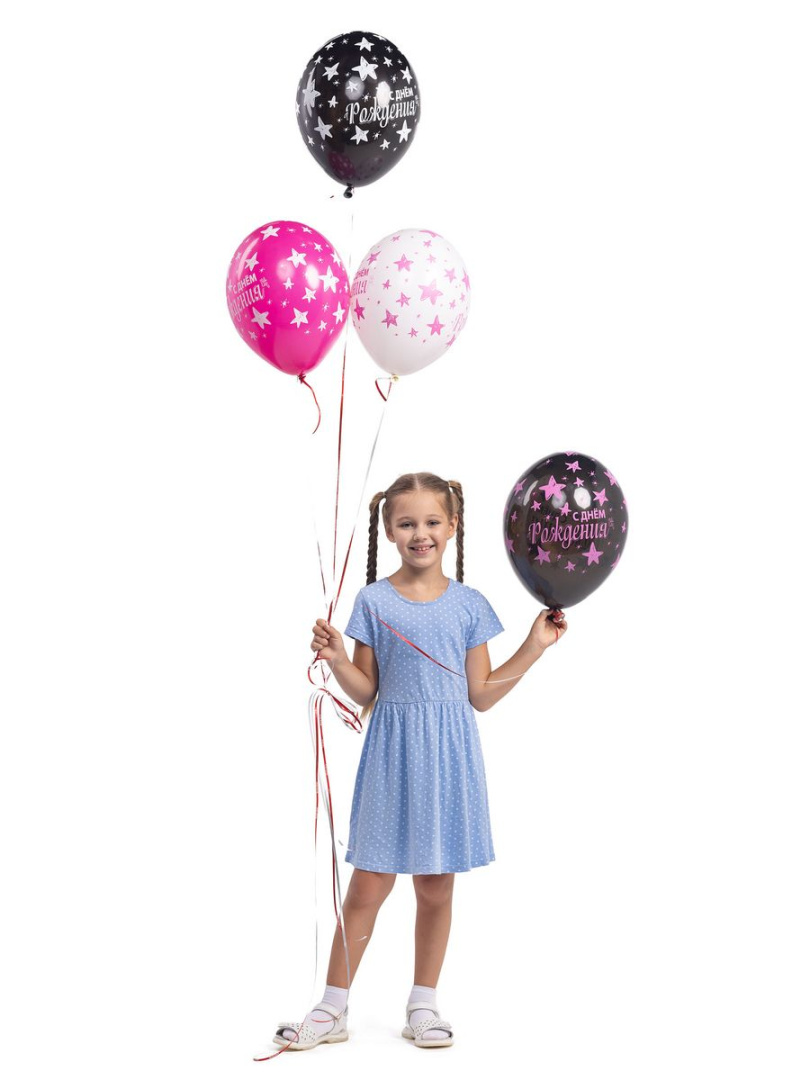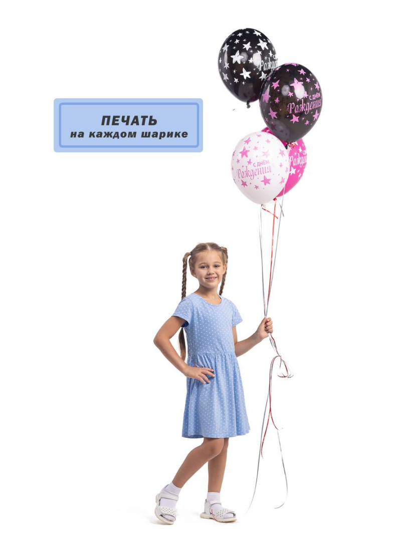 Дизайн шаров выполнен в виде звездочек, что придает им особый шарм и делает их отличным выбором для украшения праздника. На каждом шаре есть надпись "С Днем рождения!", что делает их еще более привлекательными и запоминающимися.