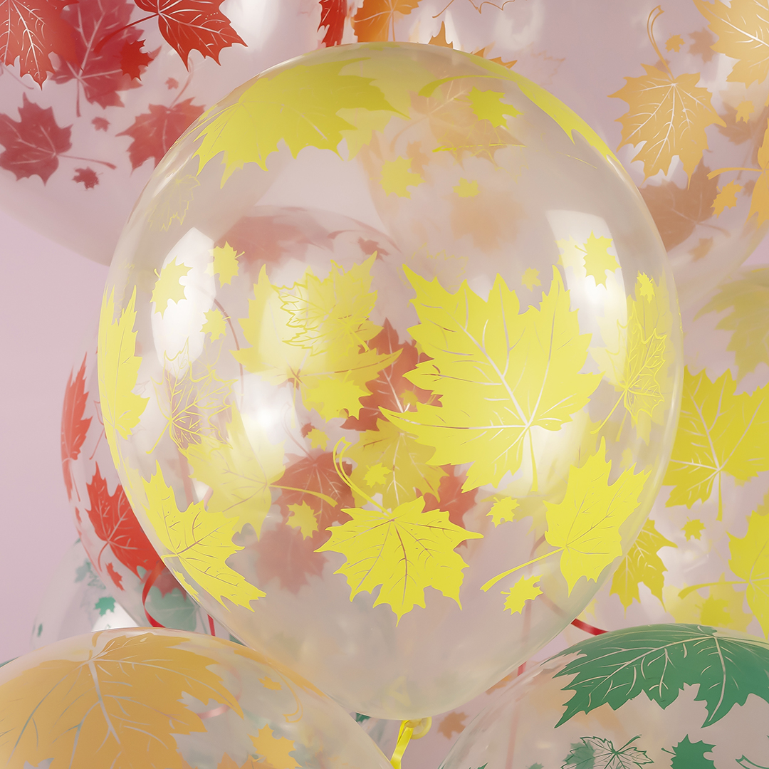 Шарики 12'' Разноцветные листья кристалл 25шт