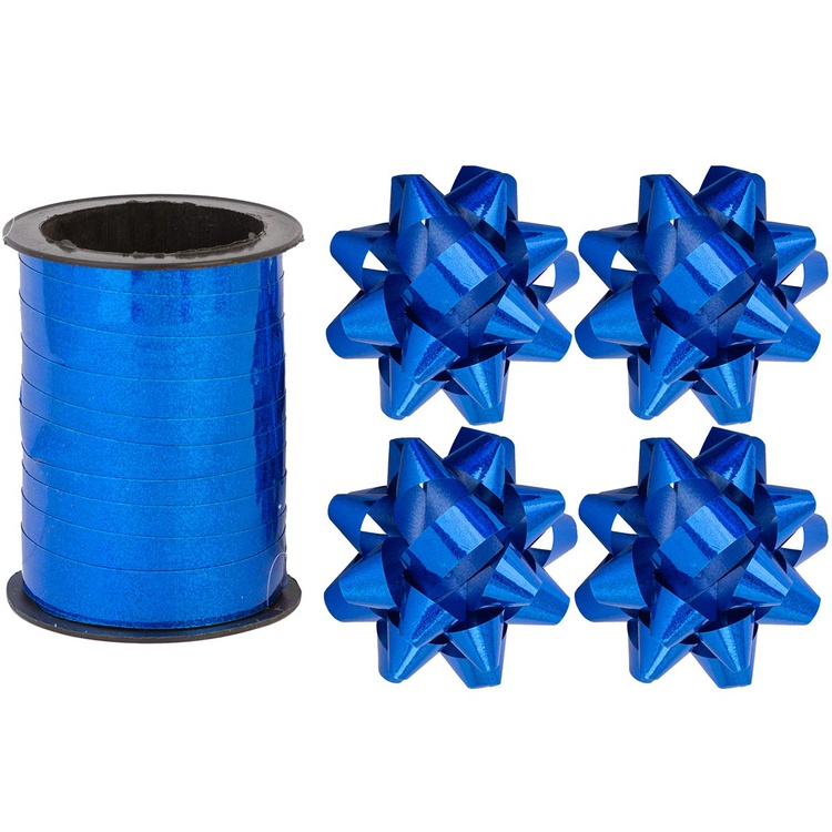 Бант 6см 4шт +Лента 10м гологр синий