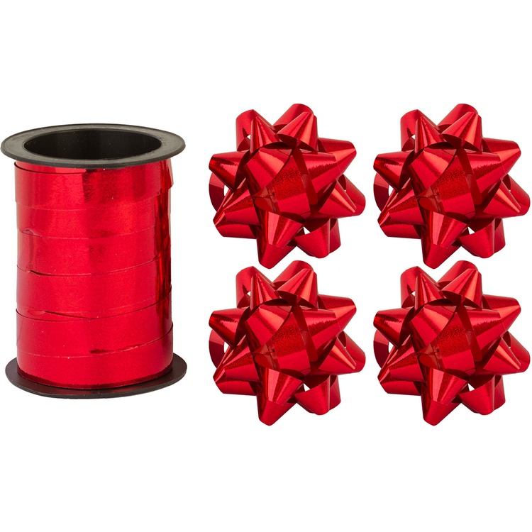 Бант 6см 4шт +Лента 10м гологр красный