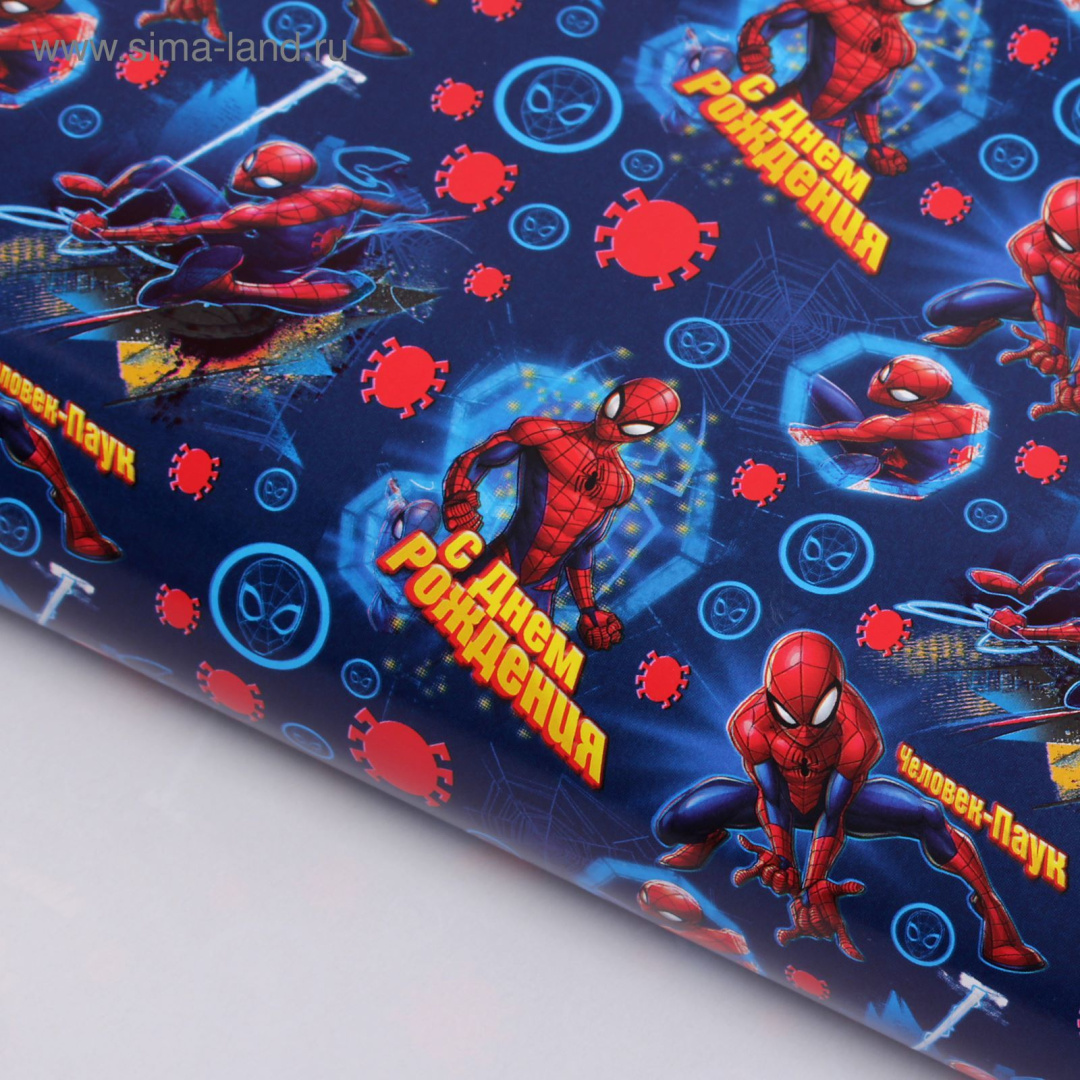 Бумага упаковочная глянцевая С Днем Рождения! Человек-паук 70х100см