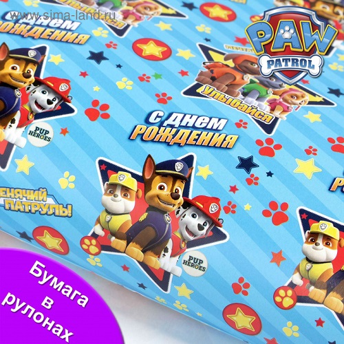 Бумага глянцевая Щенячий Патруль 100*70см в ассортименте