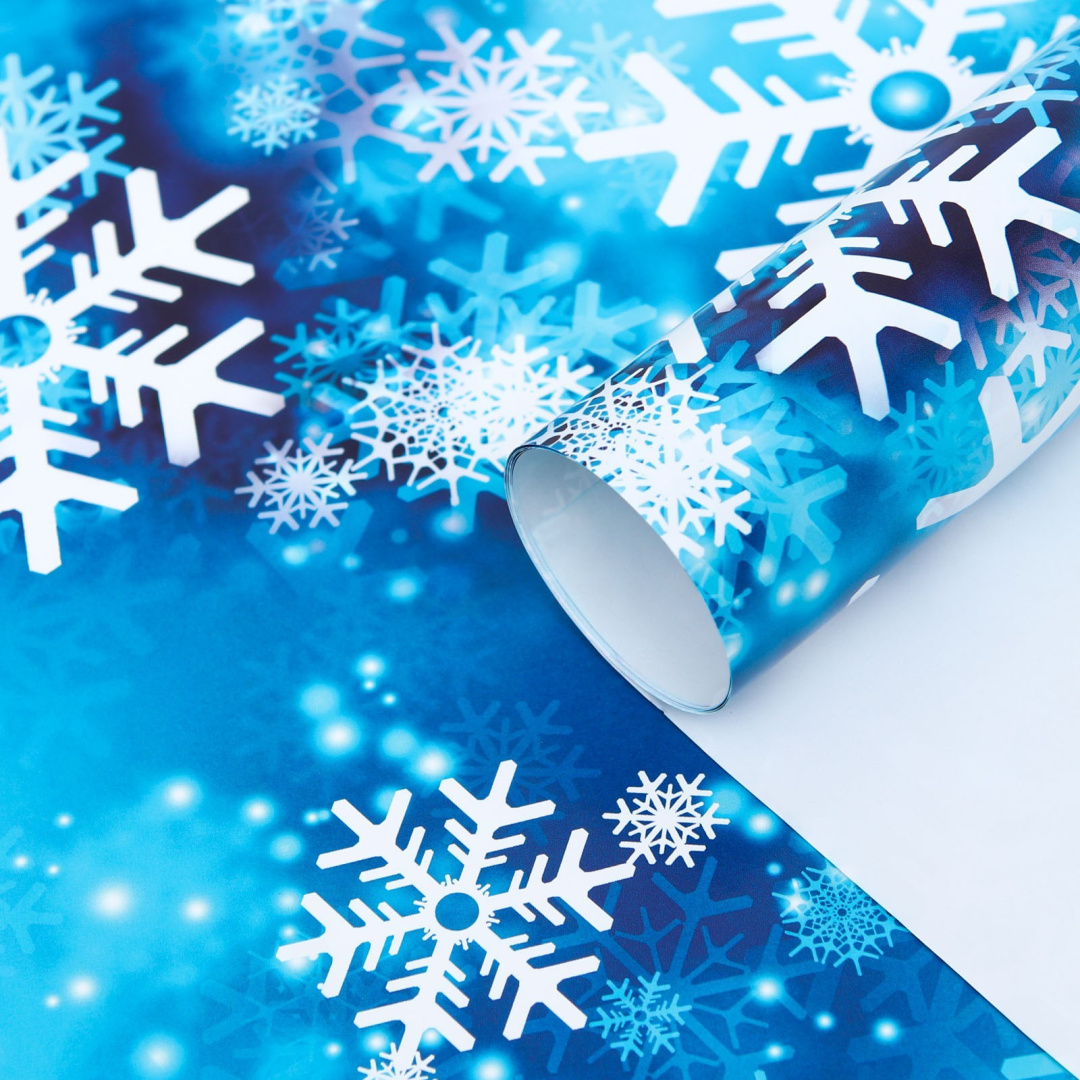 Бумага упаковочная глянцевая Снежинки 70х100см
