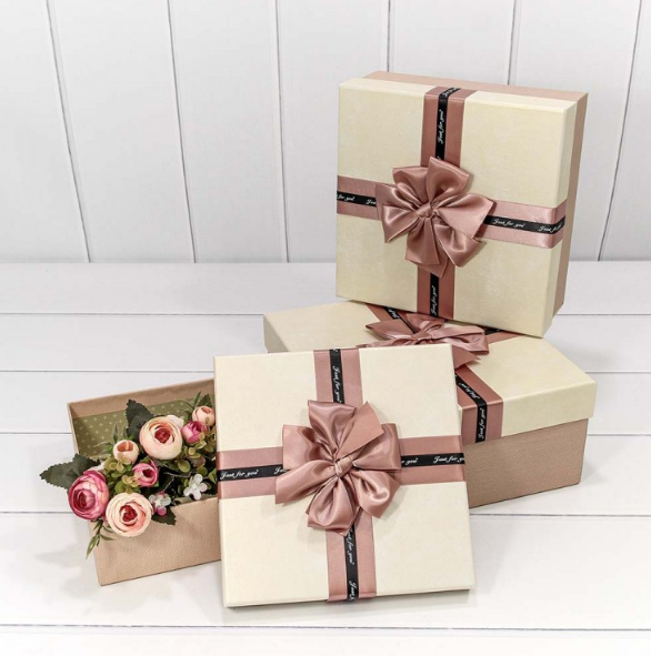 Коробка 3в1 Квадратная с двойным бантом Just for you