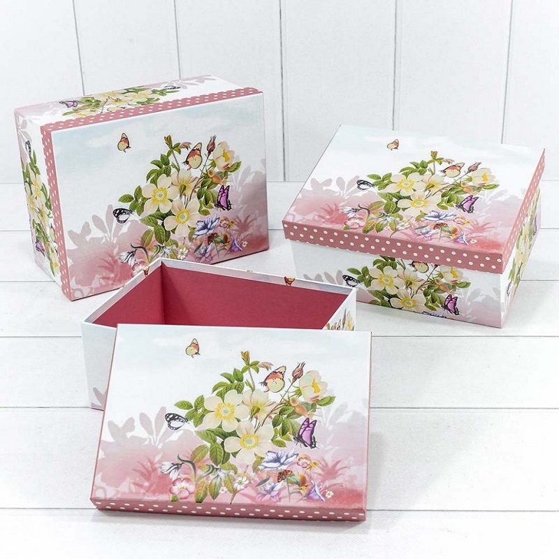Коробка 3в1 Прямоугольная Цветы и бабочки