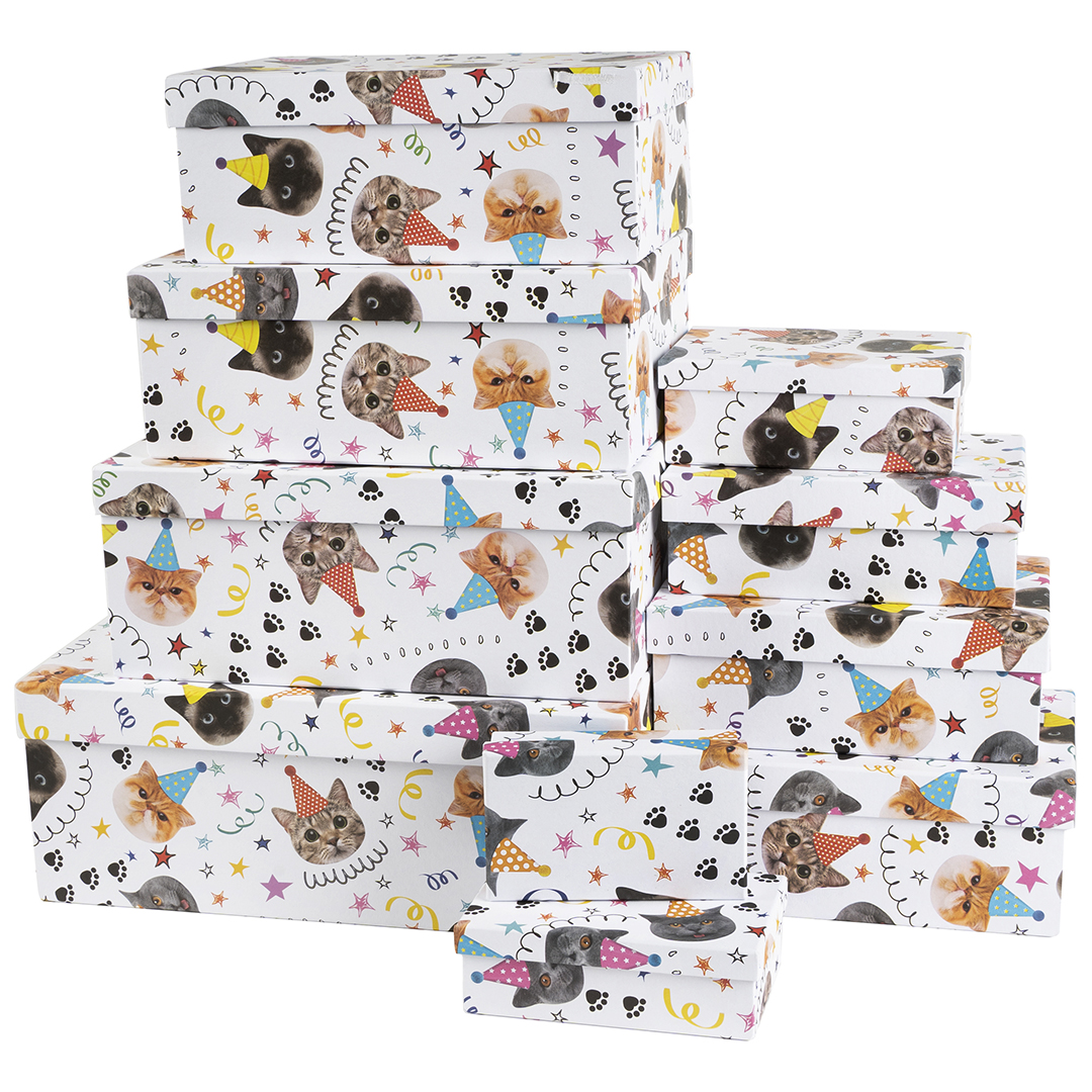 Набор подарочных коробок в едином стиле идеально подойдет для упаковки небольших презентов как для одного человека, так и для нескольких, а отличный плотный картон будет бережно его хранить. Также коробки можно использовать в качестве декоративных боксов, которые оригинально дополнят ваш интерьер.Размеры коробок: 33*20*13, 28,5*18,5*12, 26*17,5*11, 23,5*15,5*10, 21*14*9, 19*13*8, 17,5*11*7, 15*9,5*6, 13,5*8*5, 12*6,5*4 см."