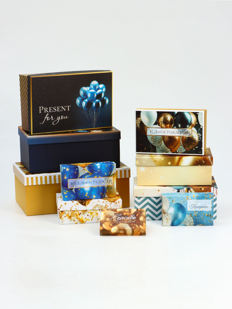 Высококачественные материалы и тщательная обработка деталей обеспечат долговечность и сохранность упаковки. Каждая коробка выглядит стильно и современно, а главное – передает радость и тепло, которые сопровождают любой день рождения.