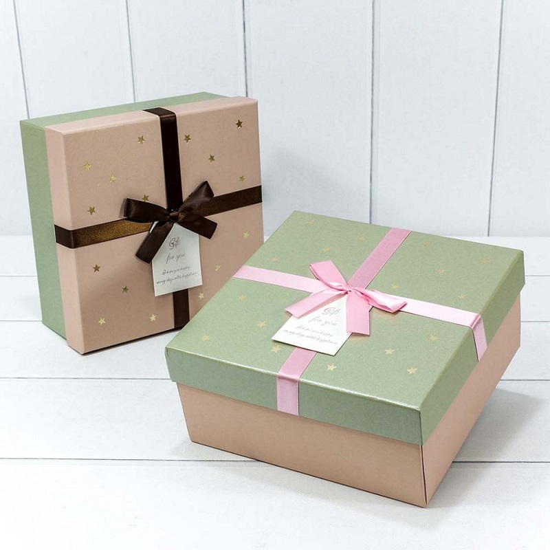 Коробка 3в1 Квадратная Звездочки с бантиком