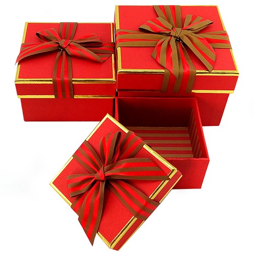 Набор коробок 3в1 Полосатый бант красный