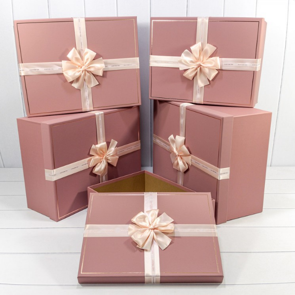 Коробка 5в1 Прямоугольная с бантом Пудровый