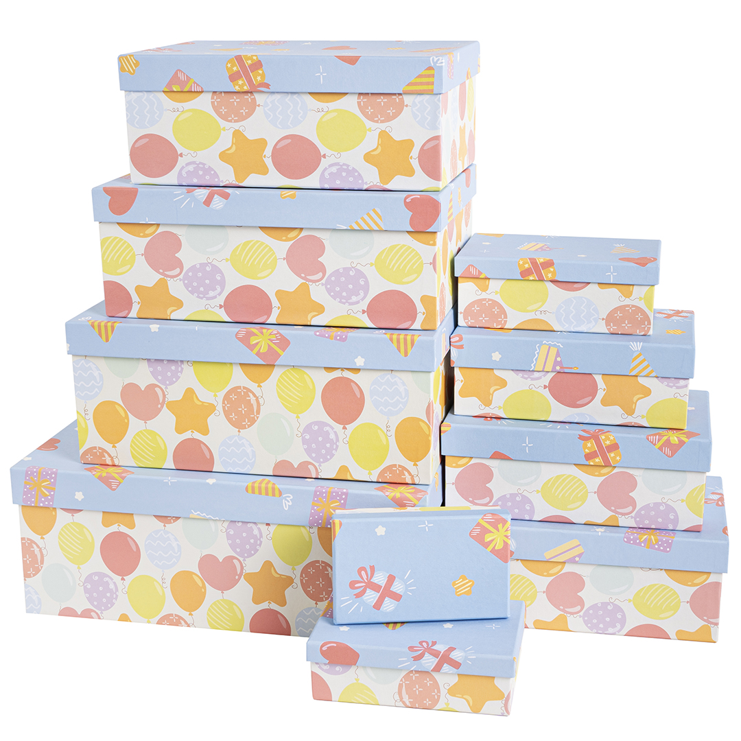 Набор подарочных коробок в едином стиле идеально подойдет для упаковки небольших презентов как для одного человека, так и для нескольких, а отличный плотный картон будет бережно его хранить. Также коробки можно использовать в качестве декоративных боксов, которые оригинально дополнят ваш интерьер.Размеры коробок: 33*20*13, 28,5*18,5*12, 26*17,5*11, 23,5*15,5*10, 21*14*9, 19*13*8, 17,5*11*7, 15*9,5*6, 13,5*8*5, 12*6,5*4 см."