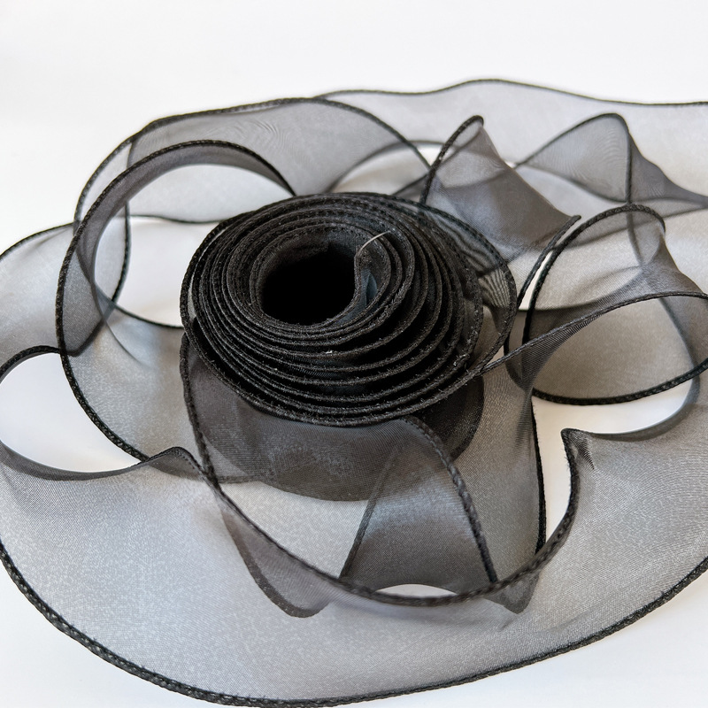 Лента декоративная (4 см*9,14 м) Органза с леской, Черный,