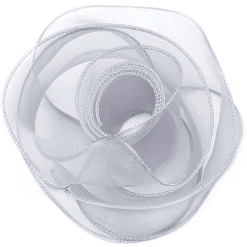 Лента декоративная (4 см*9,14 м) Органза с леской, Серебро,