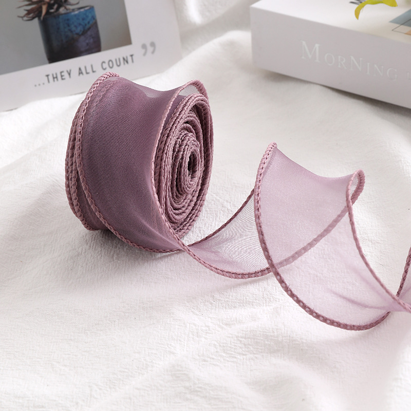 Лента декоративная (4 см*9,14 м) Органза с леской, Дымчатая сирень,