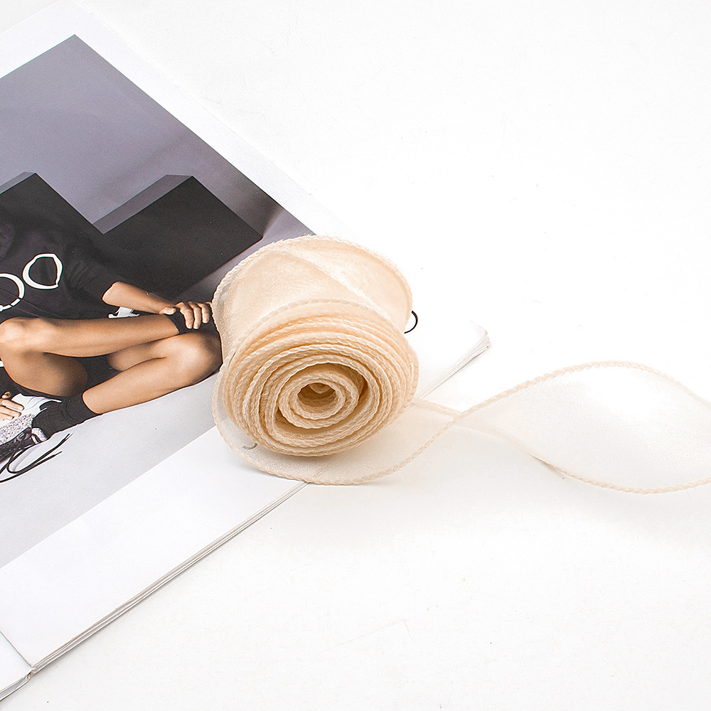 Лента декоративная (4 см*9,14 м) Органза с леской, Золотистый бежевый,