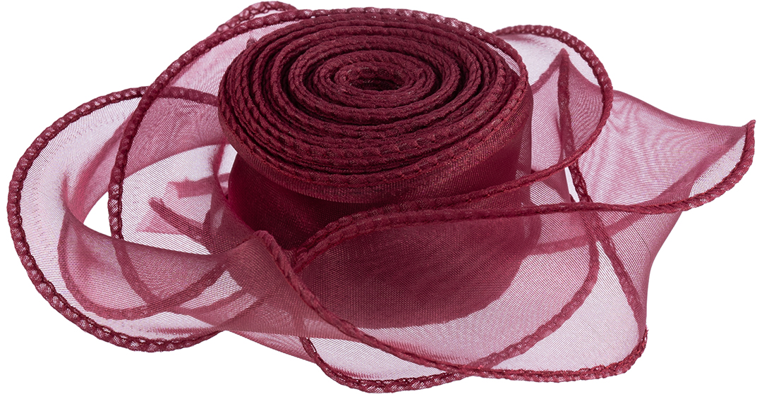 Лента декоративная (4 см*9,14 м) Органза с леской, Вишневый