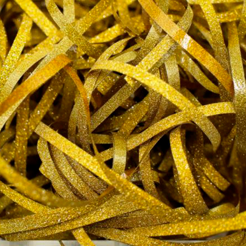 Наполнитель для коробок "Глиттерный" представляет собой полоски из специальной пленки с блестками шириной 3 мм.Наполнитель используется для создания эстетически привлекательного фона для подарков или хрупких предметов, может служить в качестве дополнительного декора при создании флористических или интерьерных композиций.