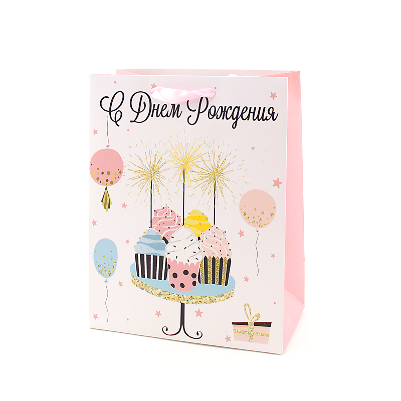 Пакет подарочный С ДР Капкейки с глиттером 18*23*10см