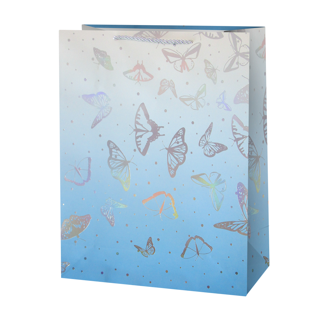 Пакет подарочный, Мерцающие бабочки, Дизайн №3, Металлик 41,5*30*12 см,
