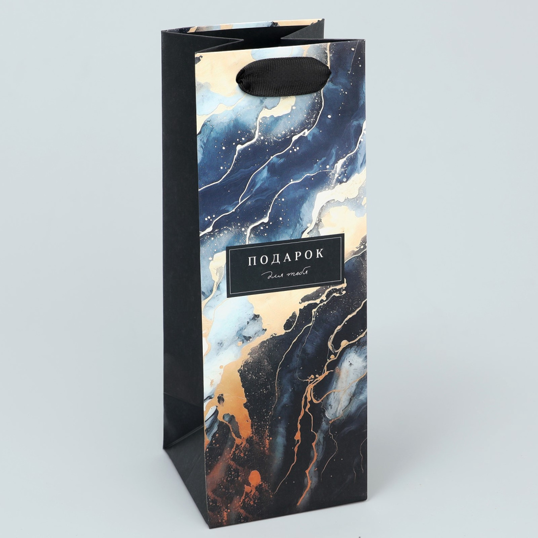 Пакет подарочный под бутылку Мрамор 9х25х8.9см