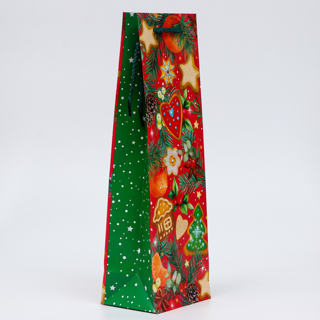 Пакет подарочный новогодний под бутылку упаковка Угощения 12х36х8,5см