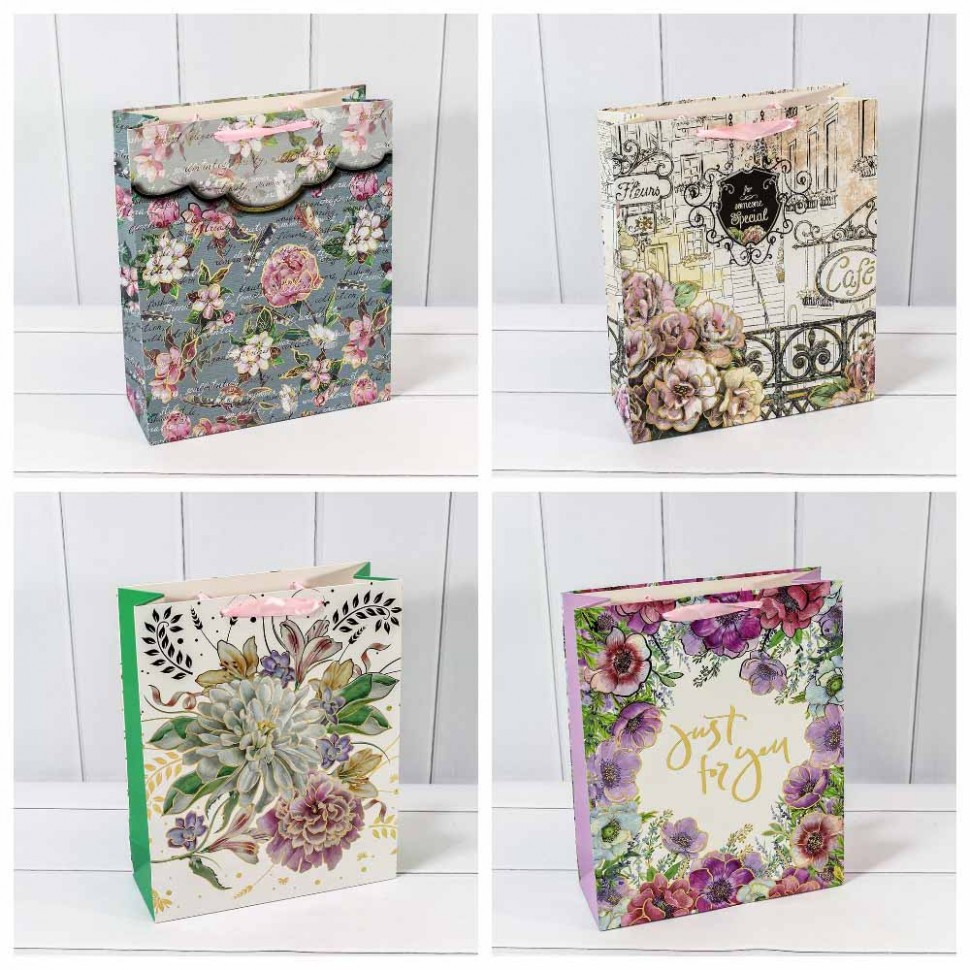 Пакет Цветы с золотым тиснением 26*32*10см